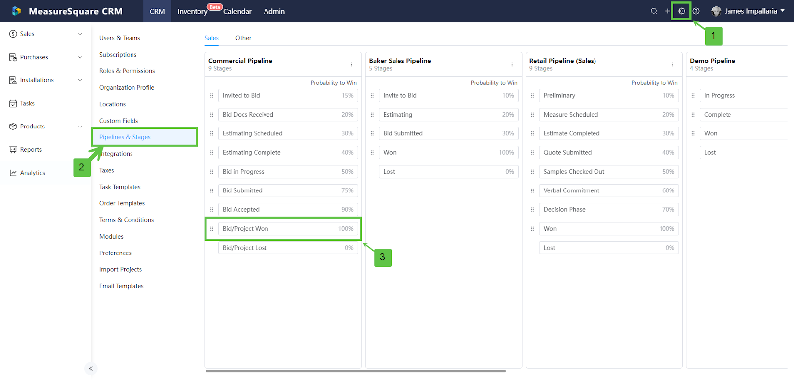 Some organizations prefer to transition their Won Projects into a separate pipeline—especially if post-contract work is handled by a different team (e.g., Project Management, Purchasing, or Operations).