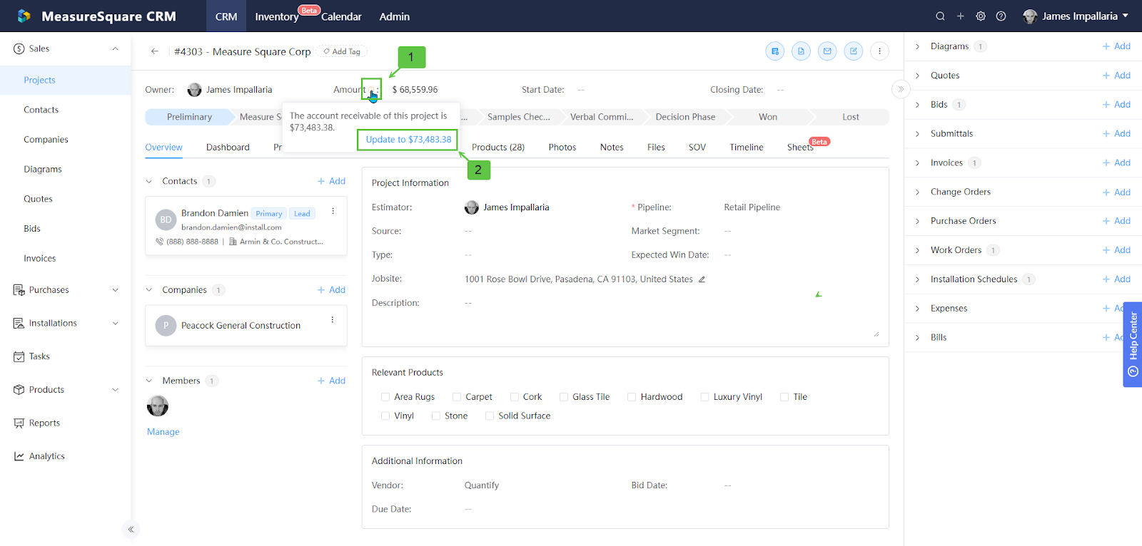 Once you’ve been awarded a project, it’s time to officially “book” it in MeasureSquare CRM. This process signals that the job is moving forward and activates several backend automations that help your team begin execution.