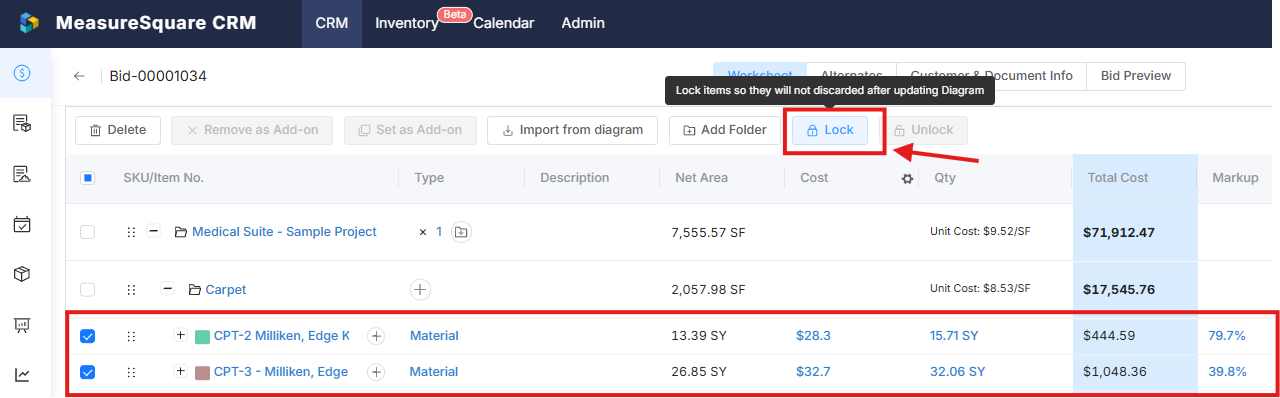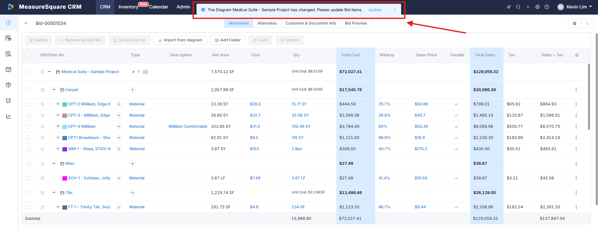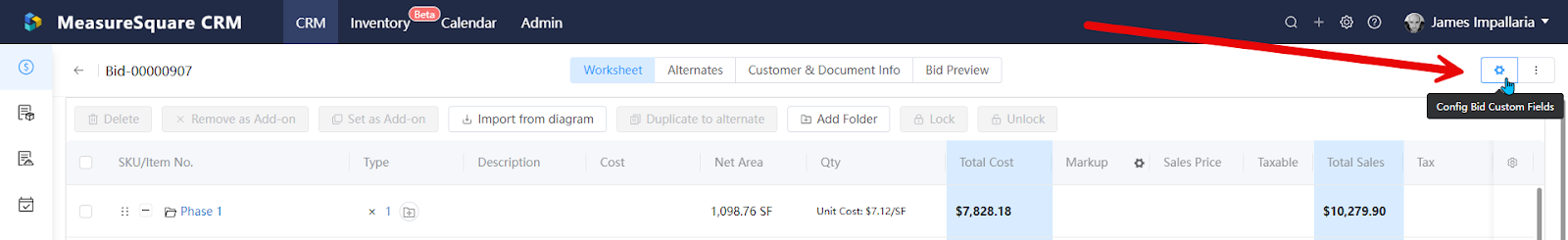 The Bid Worksheet is one of the most feature-rich areas of the CRM.