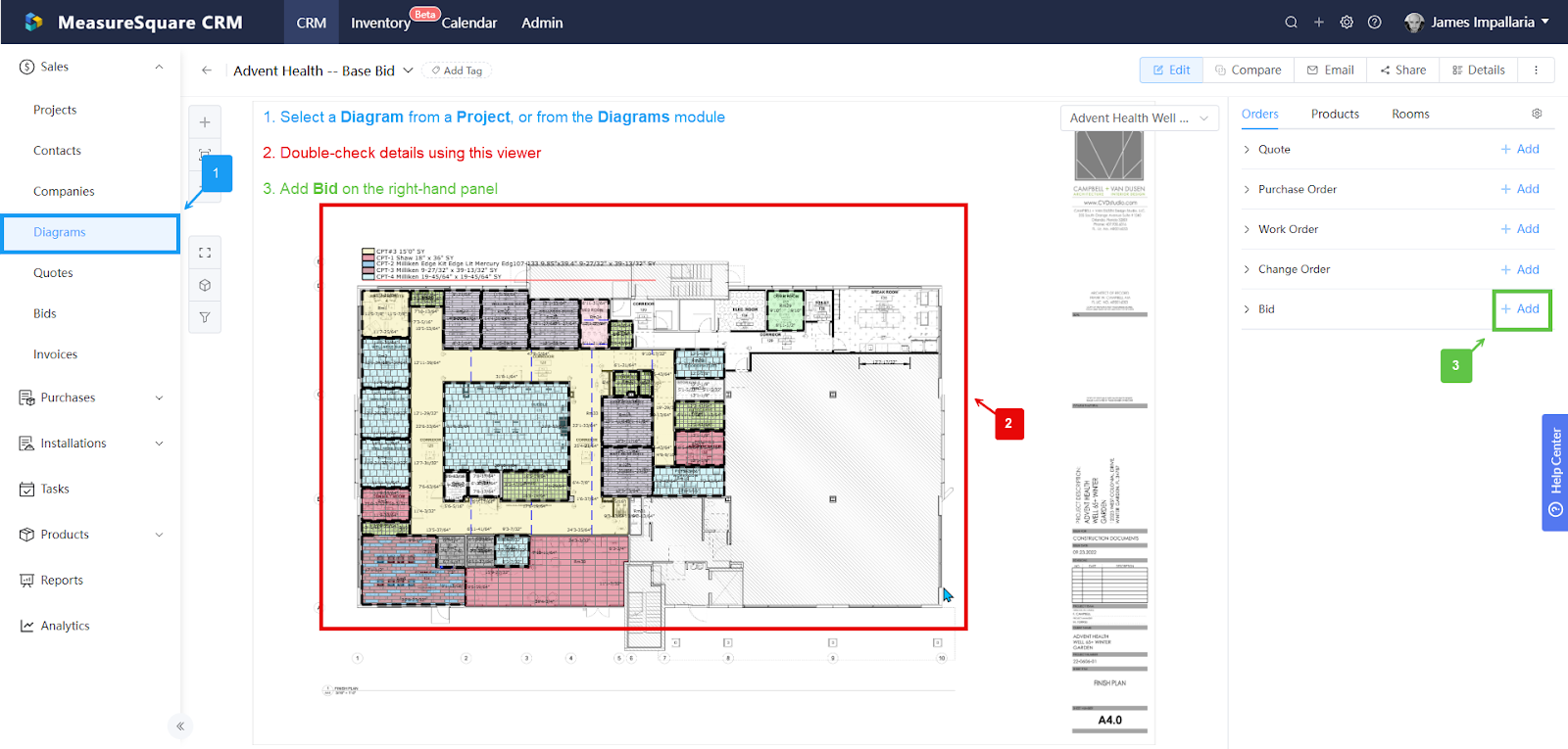 This workflow allows you to visually confirm takeoff accuracy using the Diagram Viewer before pushing data into the Bid.