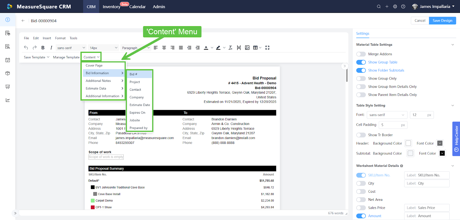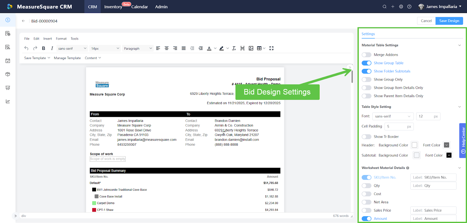 MeasureSquare CRM gives you extensive control over how your Bids and related documents look and feel. With the right setup, your team can create polished, professional proposals that require minimal effort during day-to-day estimating.