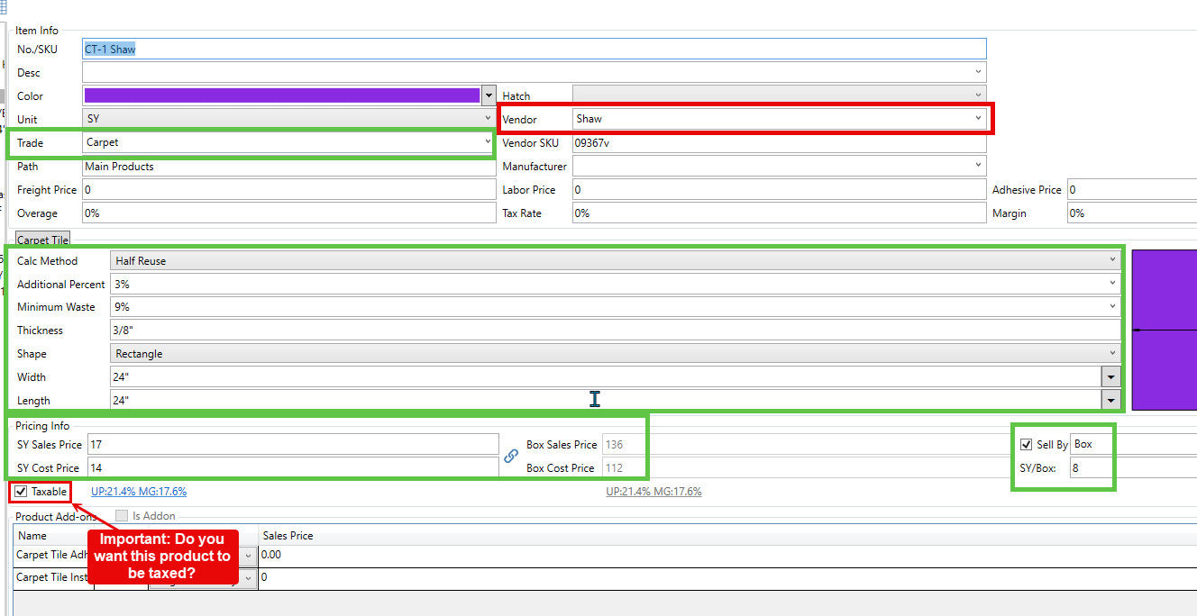Be sure to populate the Vendor field for all material products.