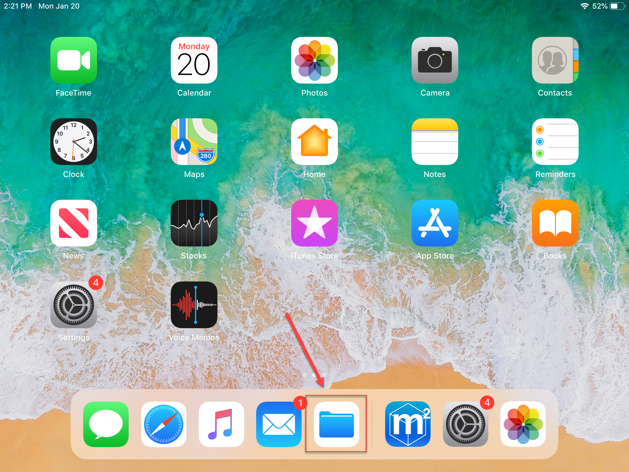 Step 1: Locate your 'Files' app on your iPad. This will be a dark folder with a white outline, possibly on the application doc at the bottom of your homepage.