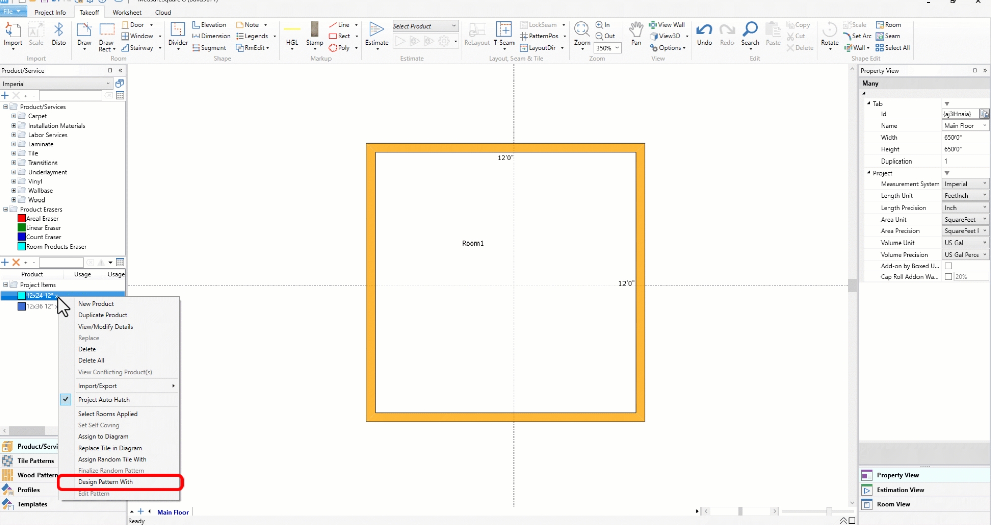 Step 1: Design pattern, right click on the tile product and select "Design Pattern With".
