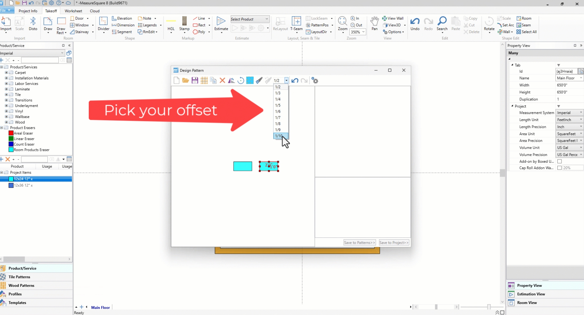 How do I create a 1/3 offset tile pattern in MeasureSquare 8?