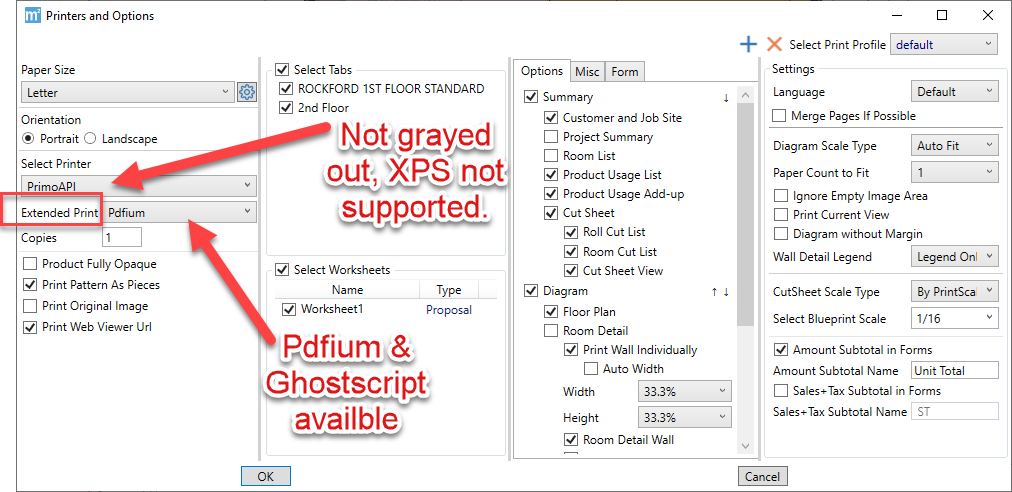 Ghostscript: Will print slower but uses less memory when XPS is not supported. This requires the 3rd part ghostscript importer to be installed. See this KB Article for instructions.