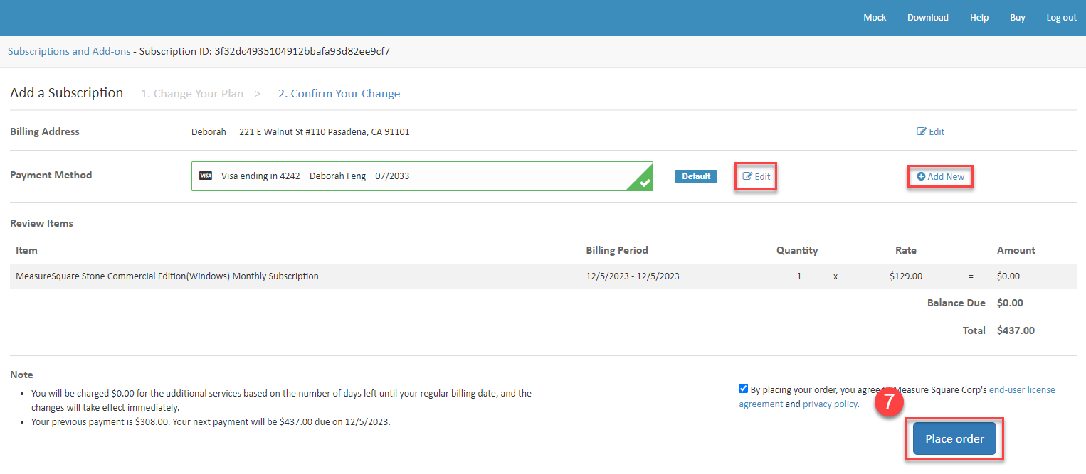 Step 7: Add/update your billing information if needed and click Place Order