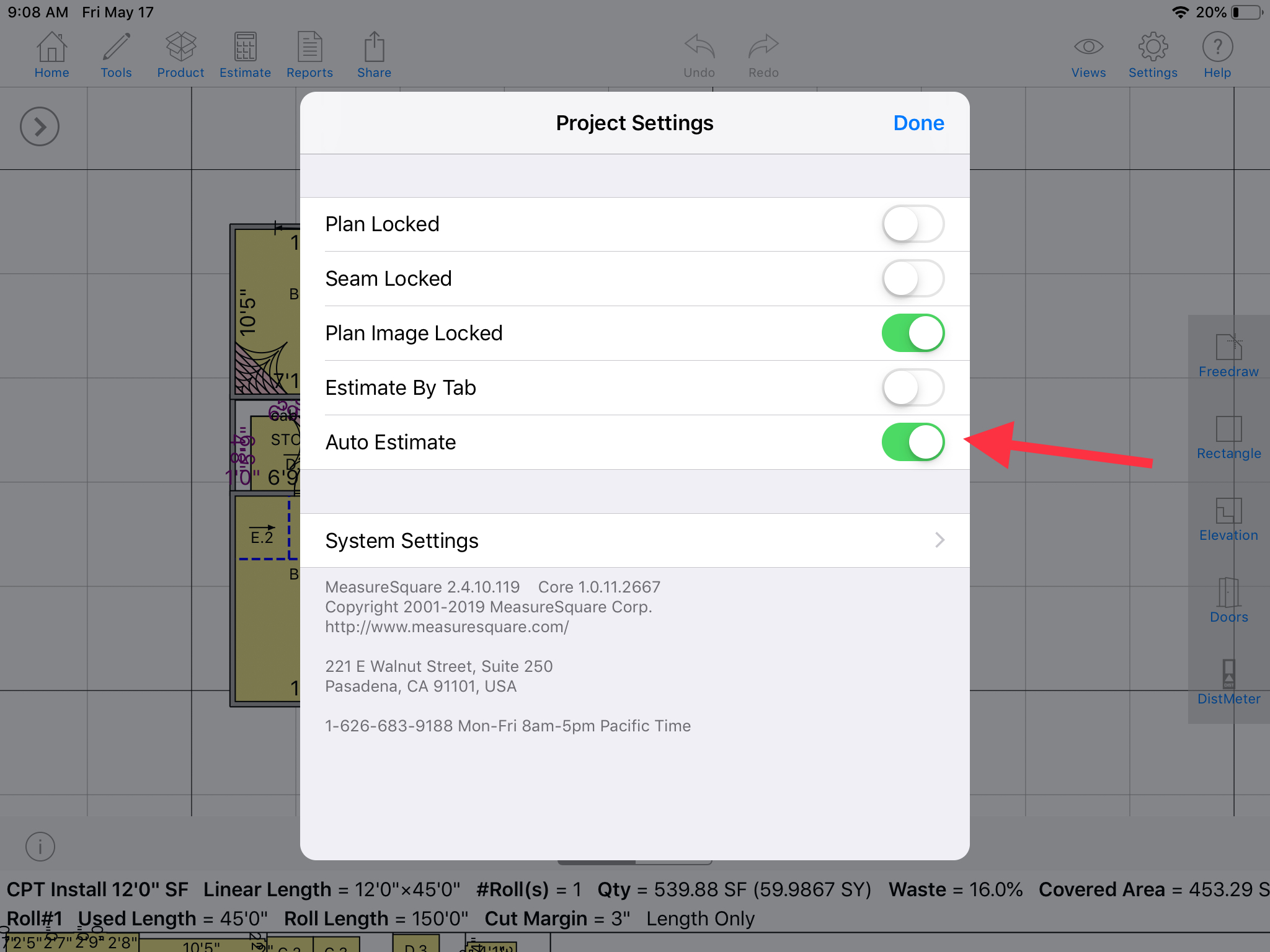 Step 2: After adding in your products and adjusting your seams, you may repeat step 1 to toggle Auto estimate ON