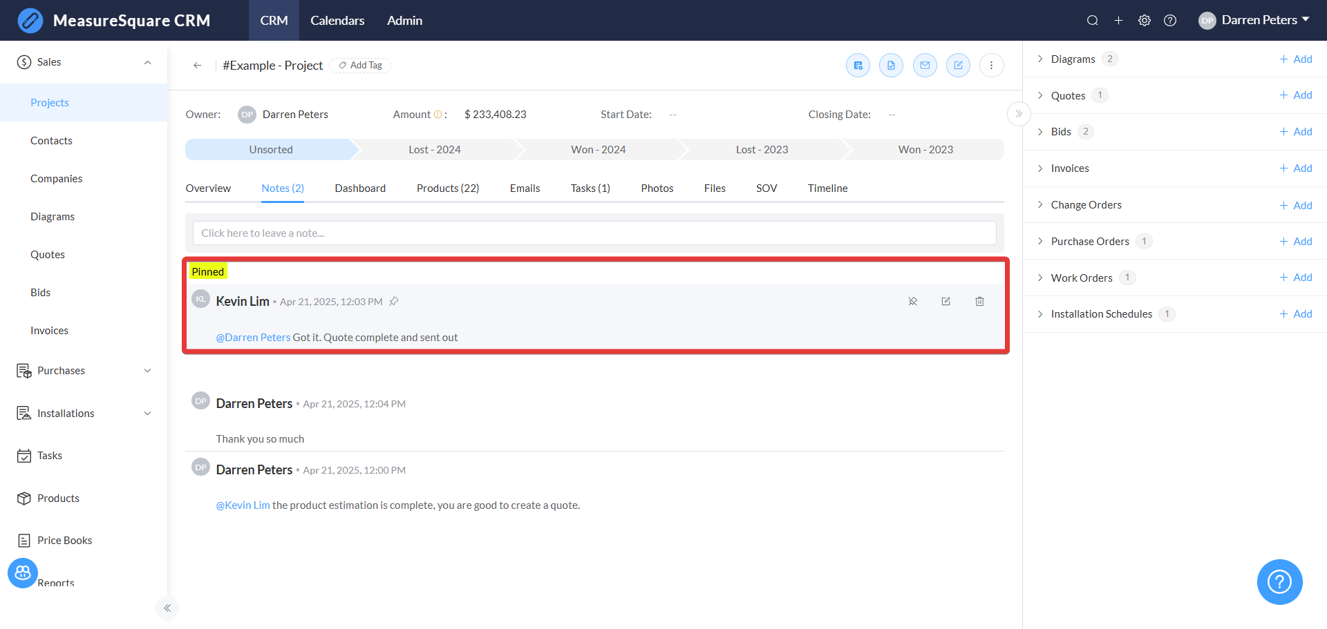 In this article we explain how to use the Notes section in MeasureSquare CRM