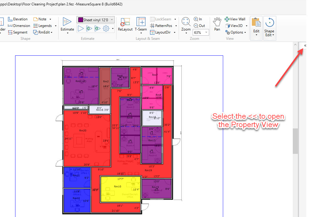 Note: You can also double click on a room and your property panel will appear.