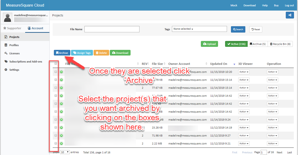 How to Archive and Un-Archive Projects on the MeasureSquare Cloud