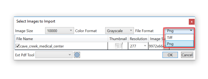 To minimize the project file size, it defaults the image color format to monochrome (black & white). However, if you lose some details after converting images, such as textures of product or furniture, you can change the color format to grayscale to preserve the details. Tiff will pull in more details which will take longer to load. Grayscale it suggested for pulling in more detail.