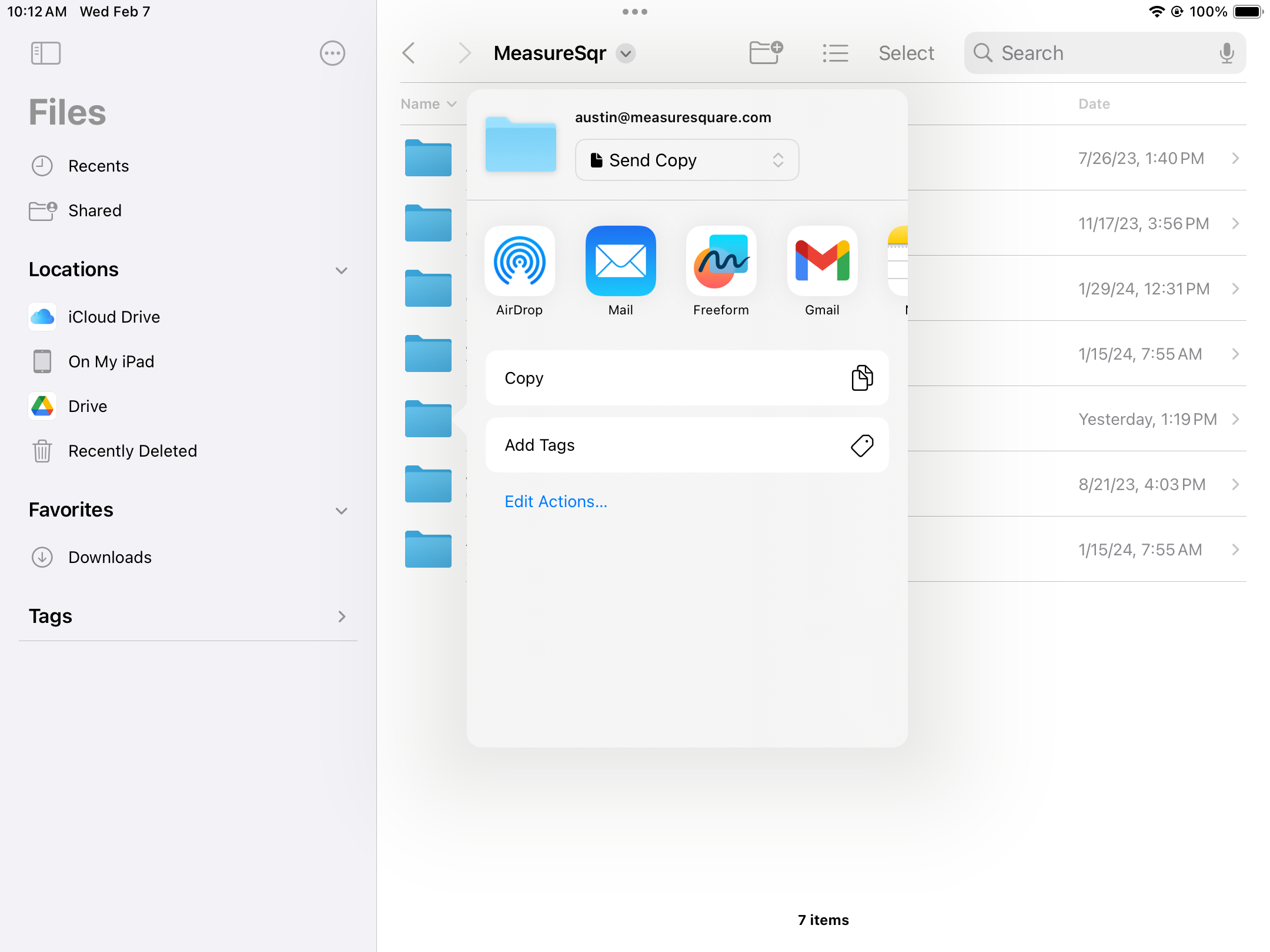 Step 4: Send this folder in an email as a copy, upload to google drive, or use any of the options available to move the data off the iPad