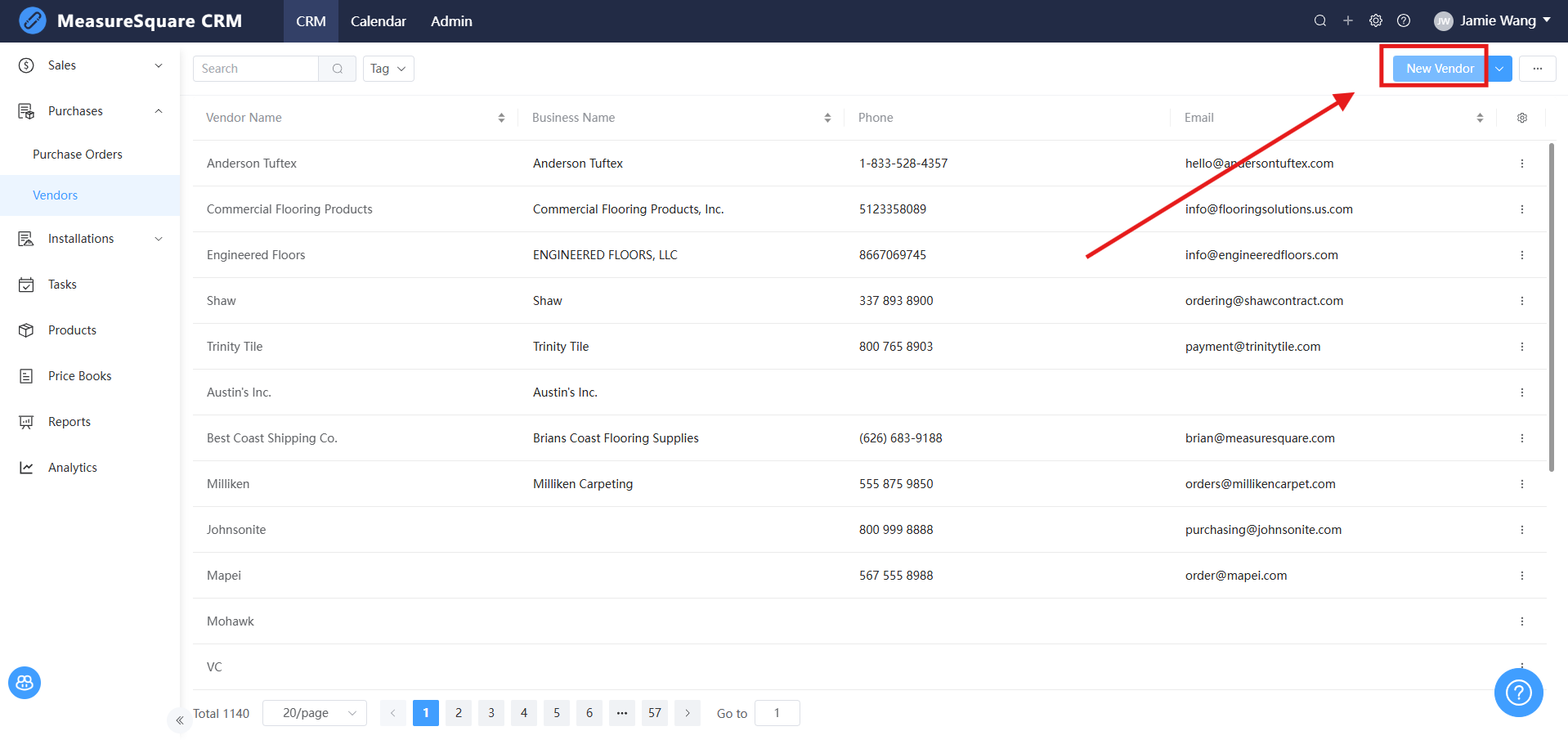 1. From the Vendors tab, click on the New Vendor button