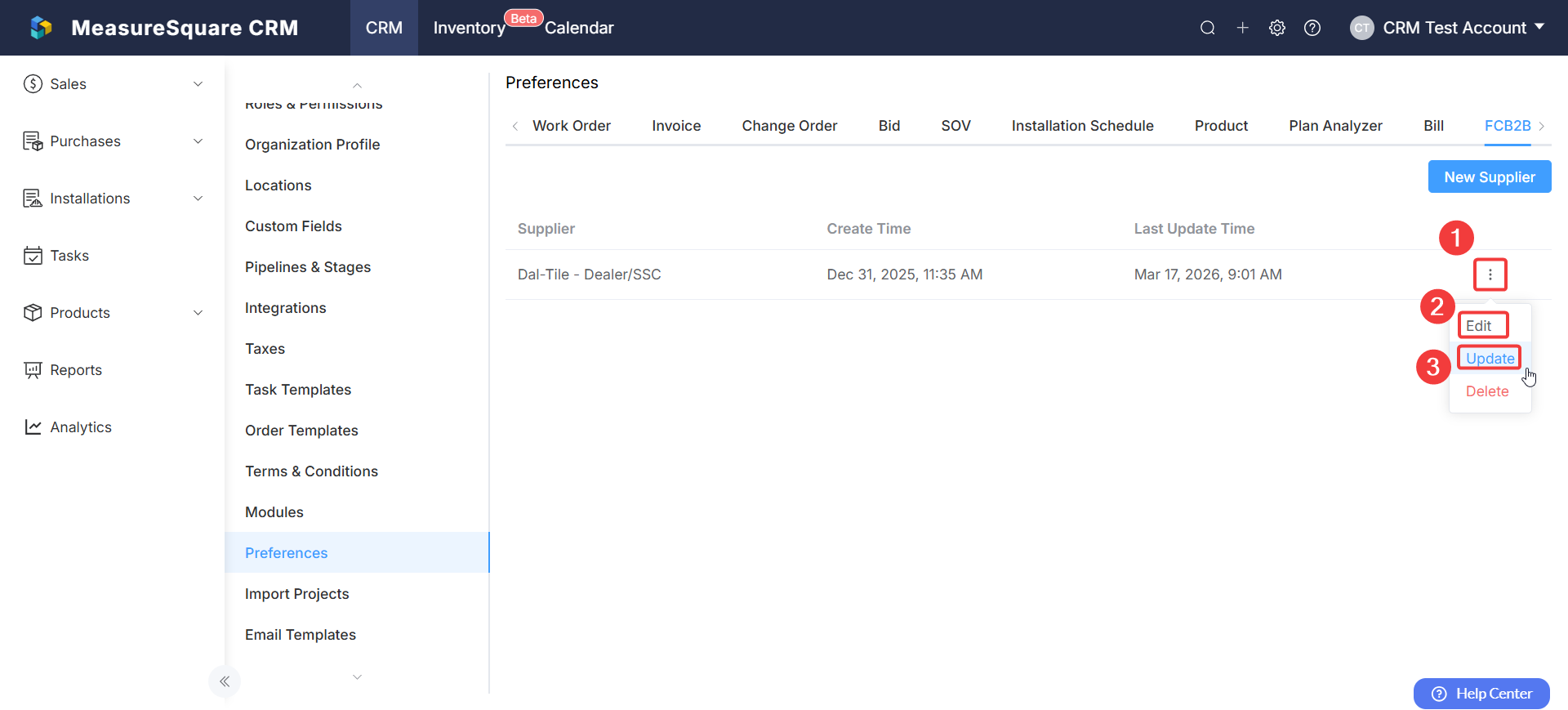 Step 1: Under FCB2B Preferences, click on the 3-dots beside the Supplier