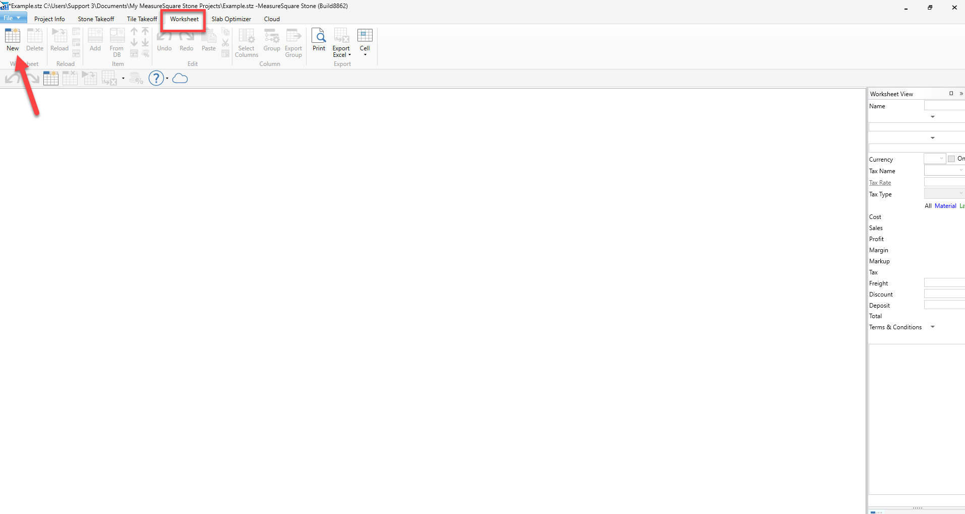 After you generated the slab cuts report and you would like to do an update report because you made some changes to your takeoff. Make sure, you go back to the Worksheet Tab, Click on New to create a new worksheet and then repeat steps 2 & 3 above again.