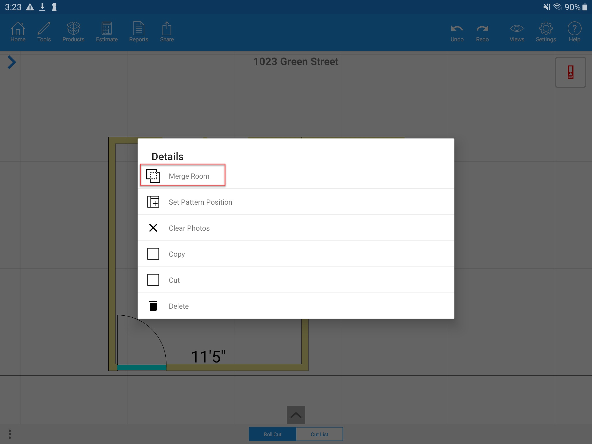 How to merge rooms in MeasureSquare Mobile for Android Tablet?