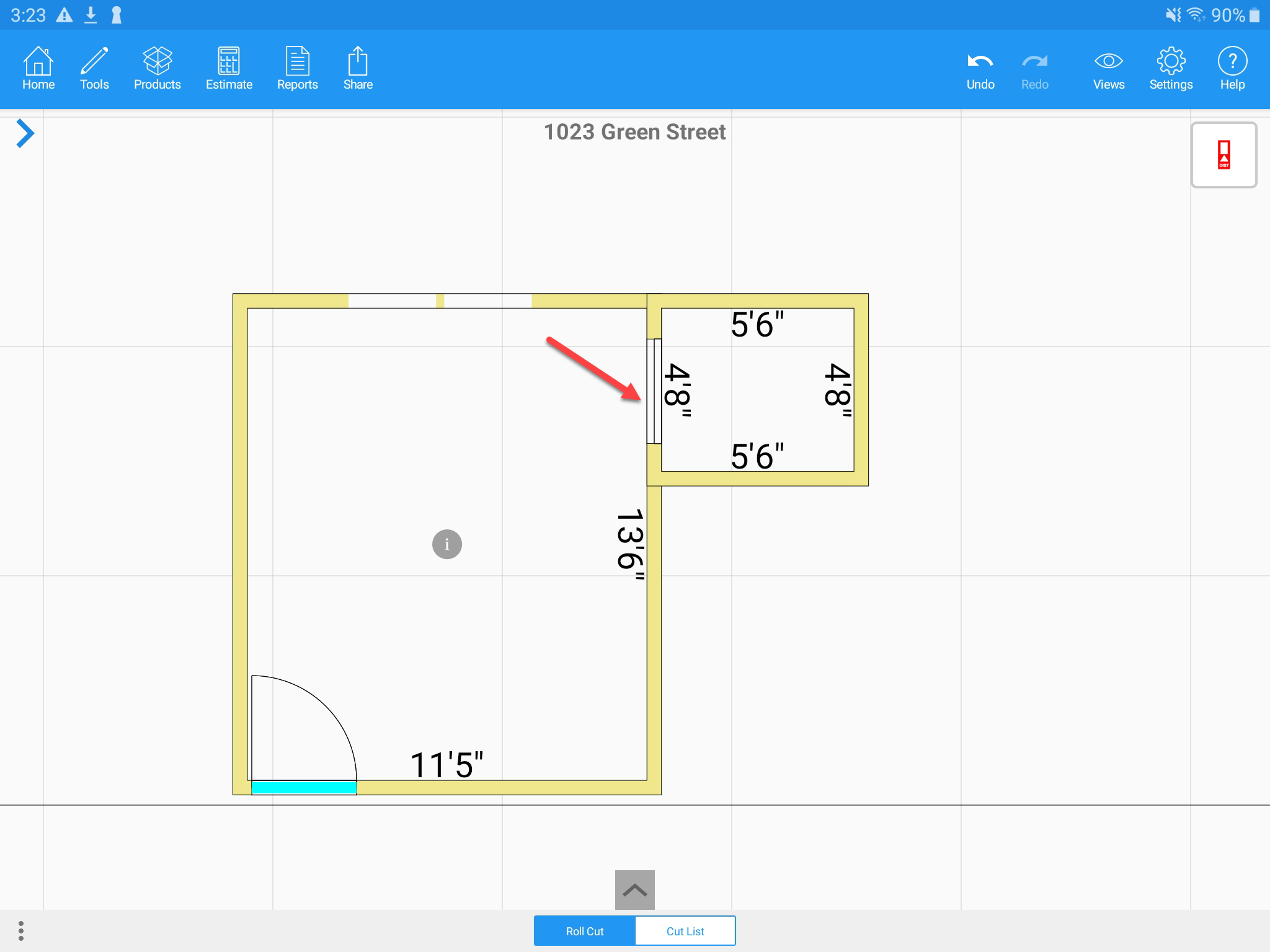 Step 1: You can also merge rooms with a door in between the rooms to create an opening > Click the "i" icon > Merge room