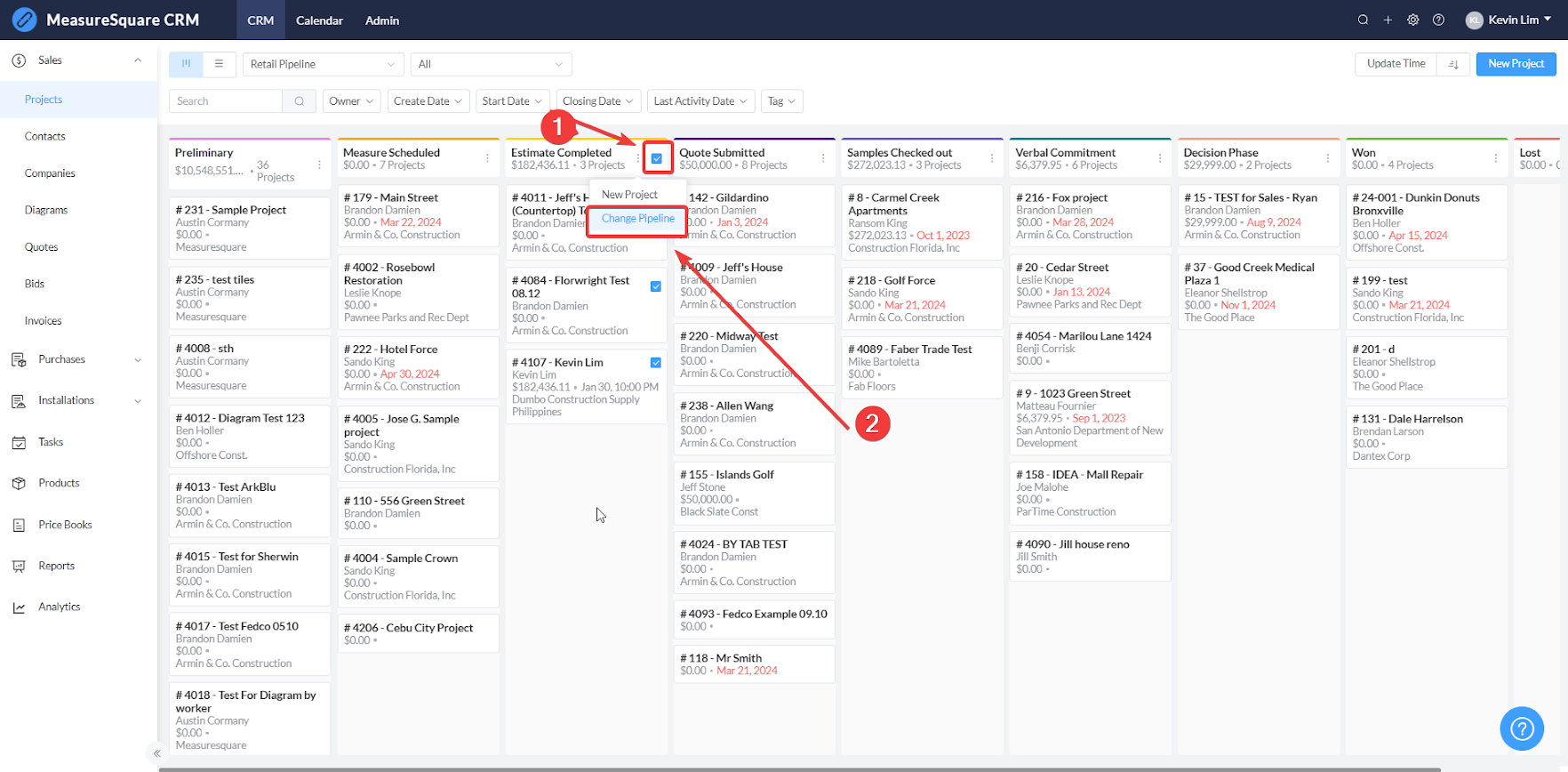In this article, we will show you how to move projects from one pipeline to a different pipeline in MeasureSquare CRM.You may move multiple projects and move them to a different pipeline using two different methods: