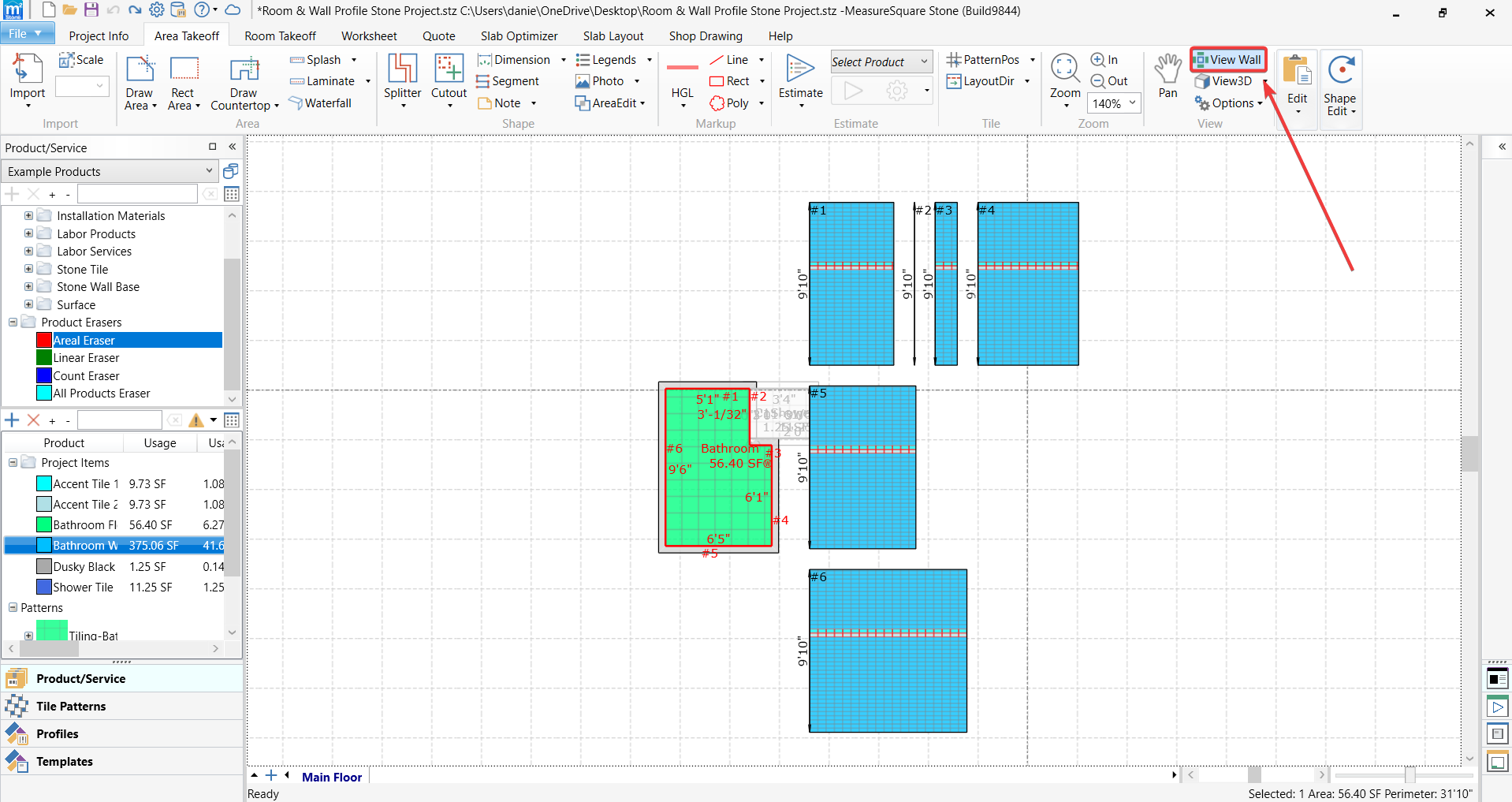 In this article, you will learn how to edit and apply products on a wall on MeasureSqaure 8. Step 1: turn on the "View wall" option at the top toolbar. Step 2: click on the room --> right-click on one of the walls that show up on the right side -- > ...