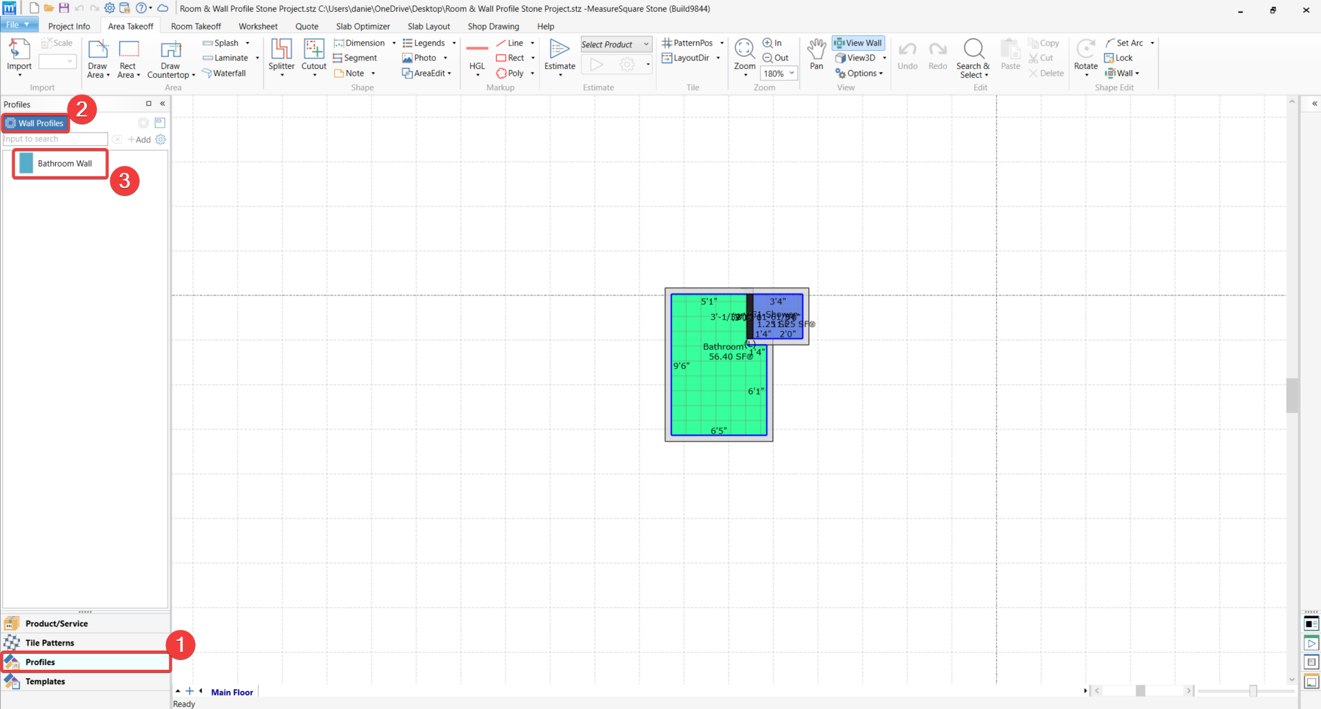 Navigate to the Profiles panel on the left-hand side of the screen. Click Wall Profiles (1), and you will see the saved wall profile listed (2).