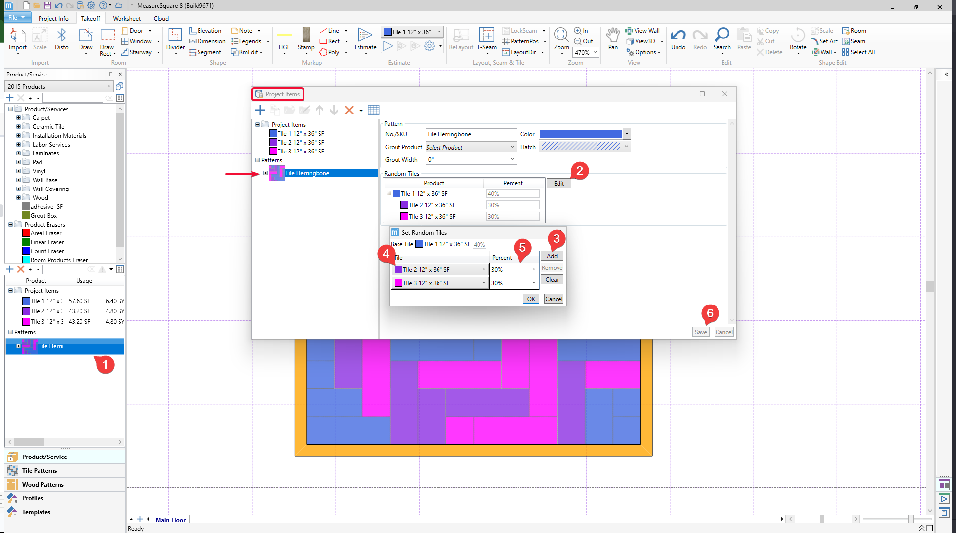 How to set random tiles by percentage with a herringbone pattern in MeasureSquare 8