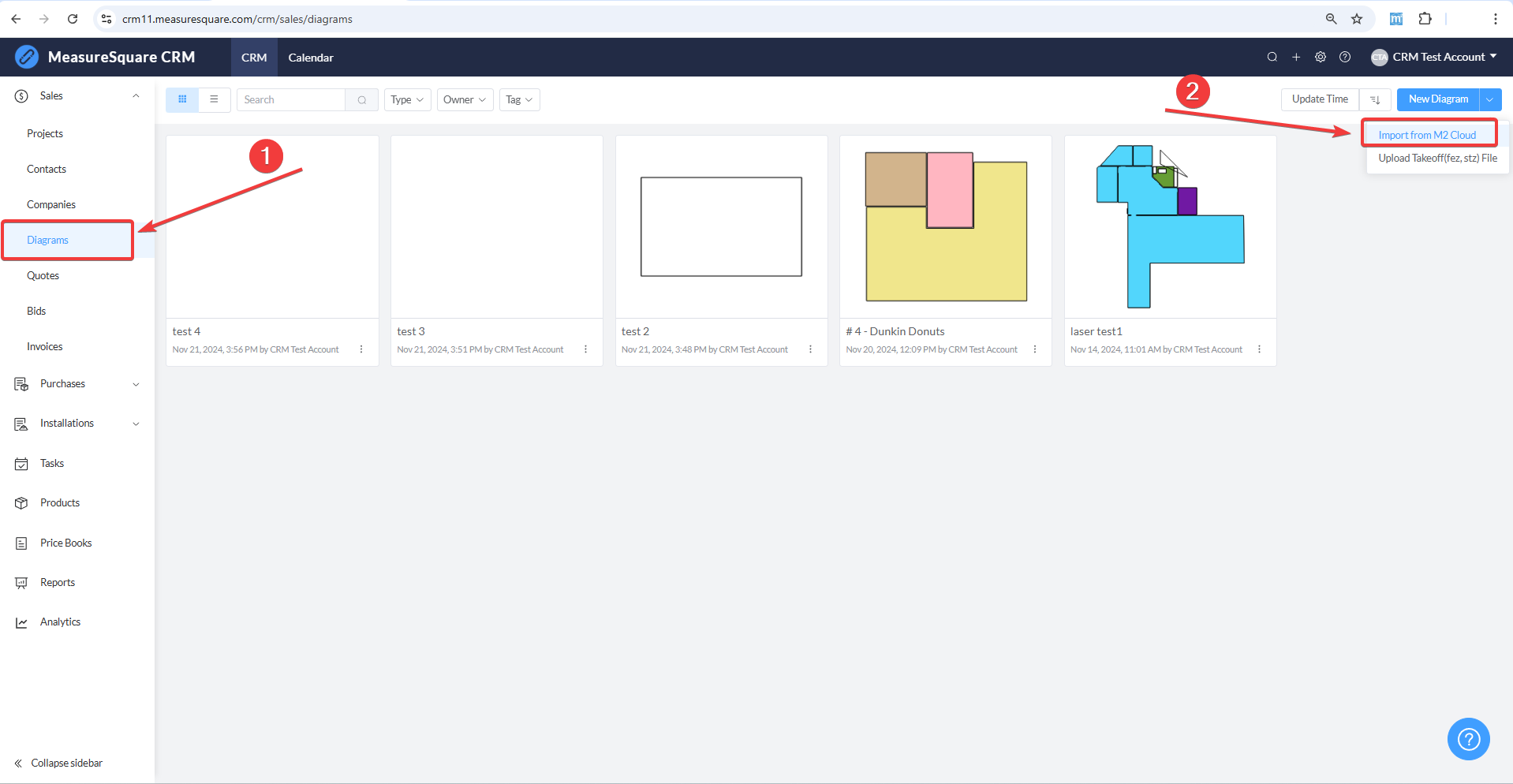 You can import your diagrams from MeasureSquare Cloud to MeasureSquare CRM. This process helps streamline your workflow, ensuring that all project-related information is centralized and easily accessible within the CRM system.