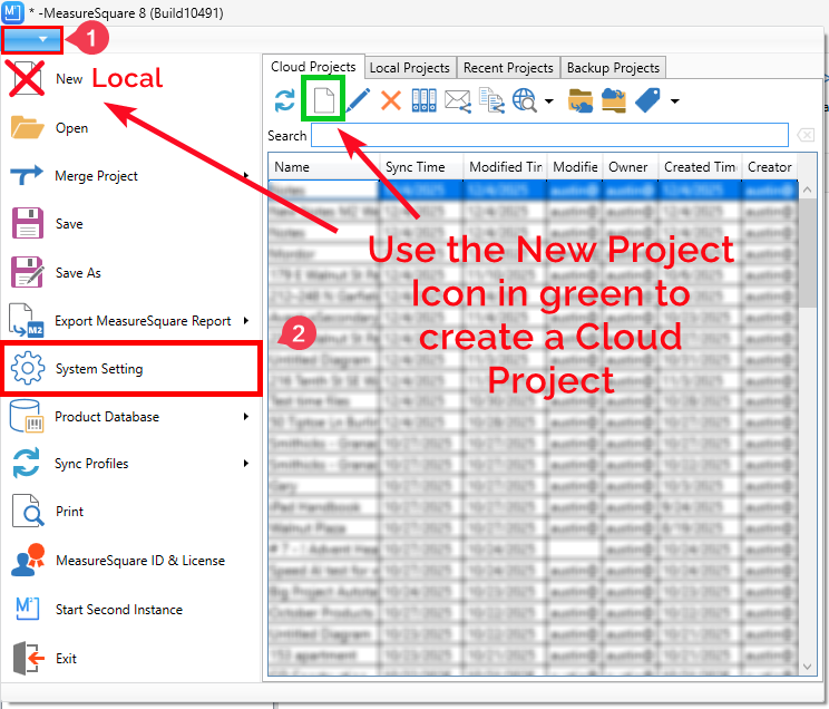 Preface: MeasureSquare CRM most easily retrieves projects from MeasureSquare Cloud. This is an account based storage space that holds FEZ and STZ files, which are sometimes called Project files. MeasureSquare 8 can create a project in two different ways, Locally and straight to Cloud. Additionally you can enable settings to automatically update your cloud projects whenever you open or close MeasureSquare 8.