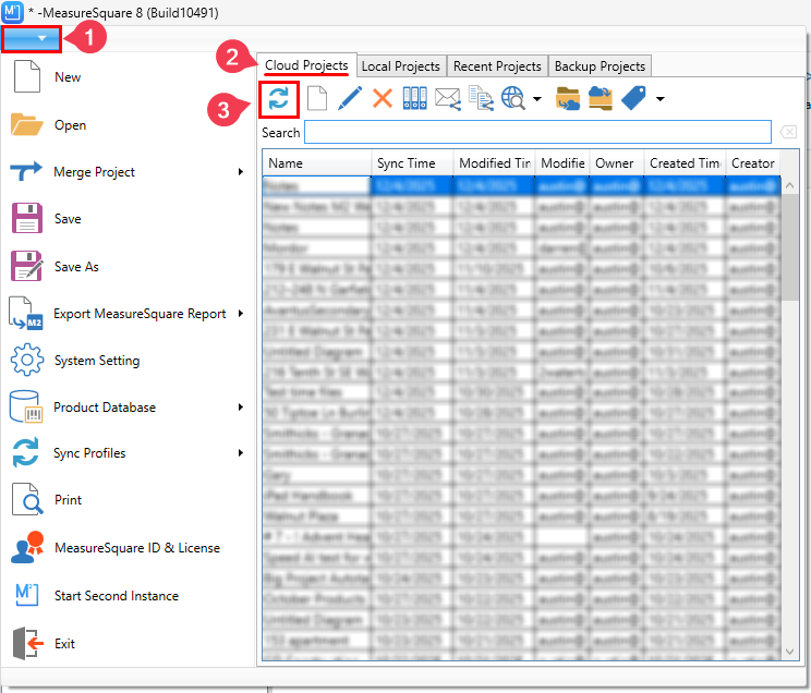 Step 3: To Sync Manually while the program is open. Click on File > Cloud Projects > Click the Sync Icon