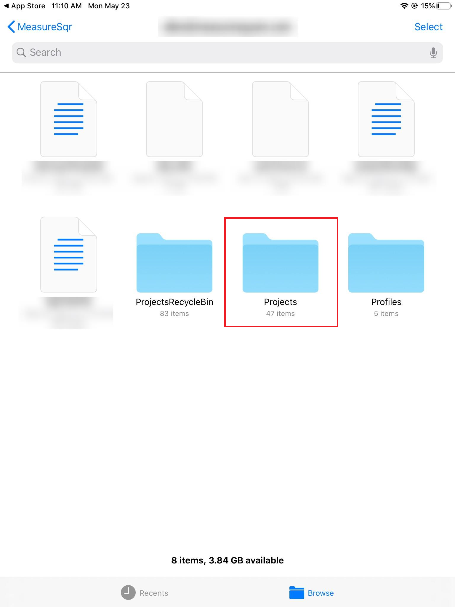 3. Go through the following folders: MeasureSqr -> [Your MeasureSquare ID] -> Projects.