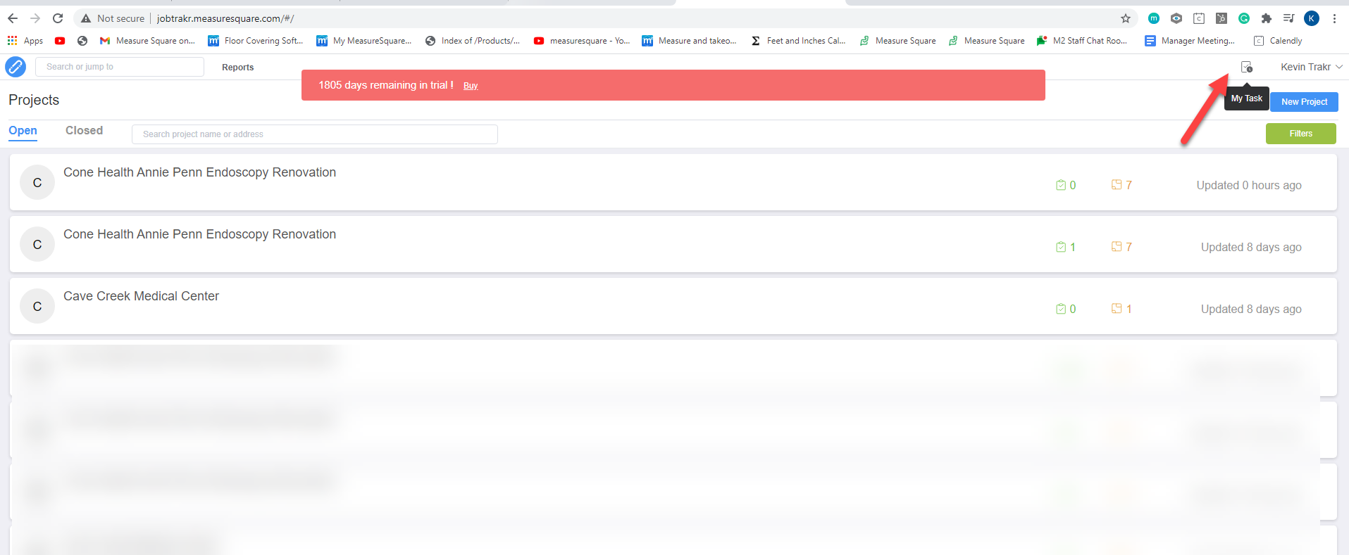 Step 1: Go to the projects' view > Click on the paper with the check mark icon on the top right for My Task
